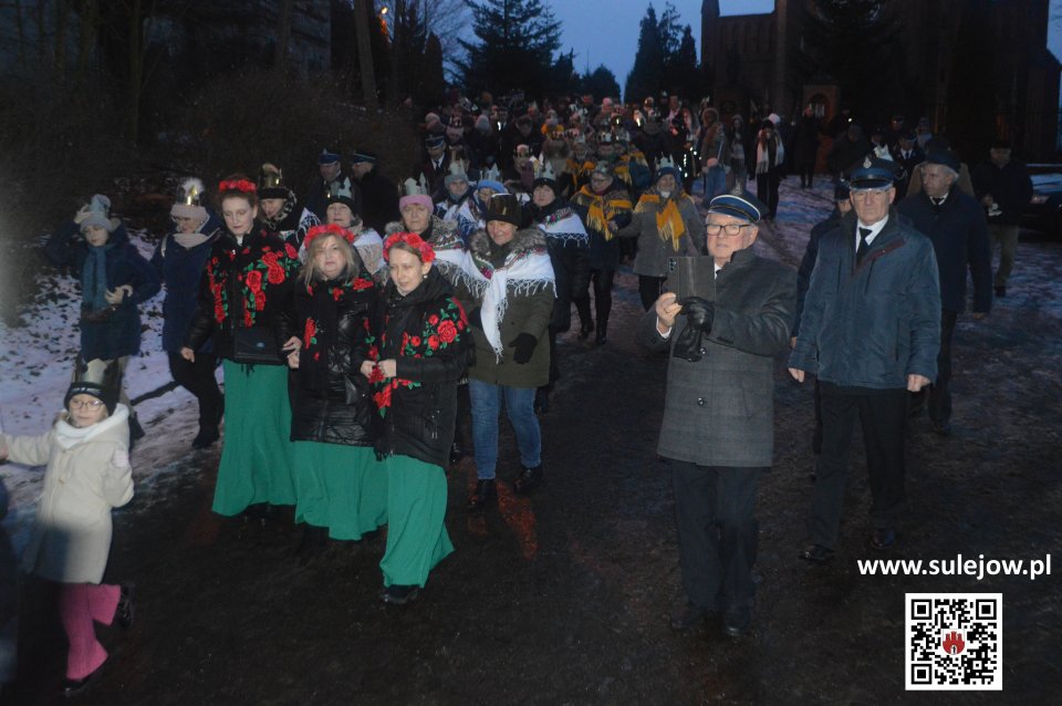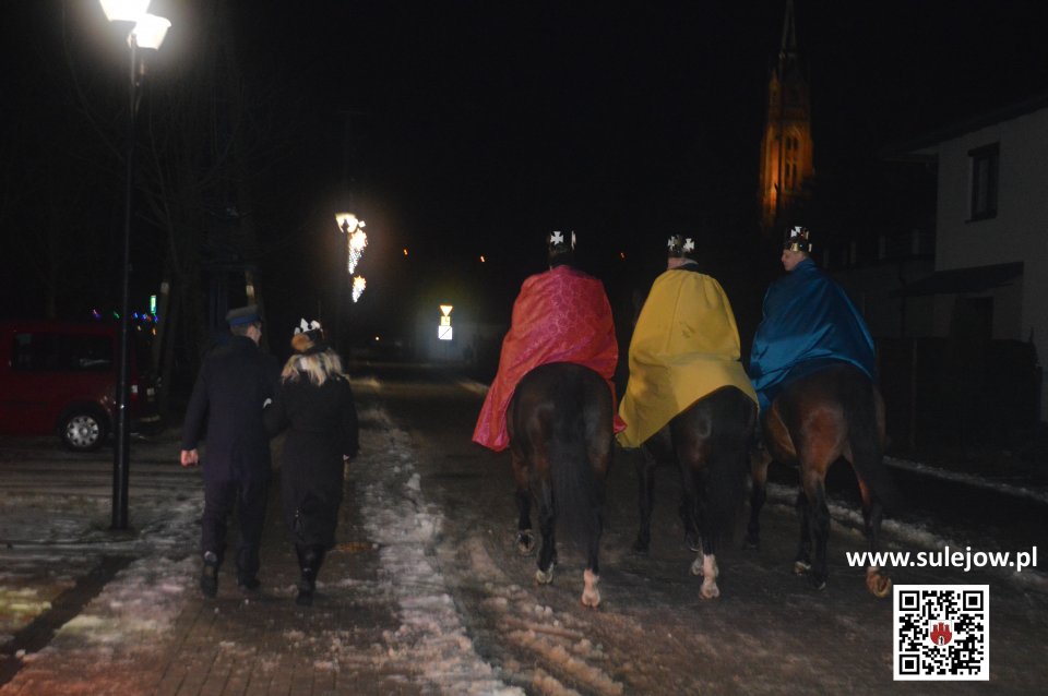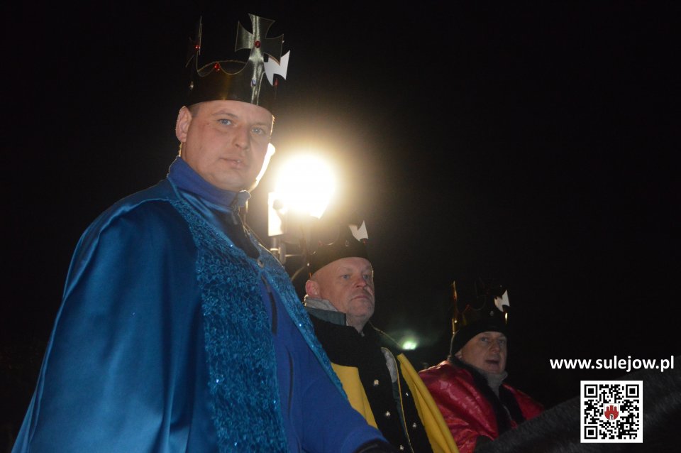 Na czele jechali członkowie grupy rekonstrukcyjnej Stowarzyszenia Ułanów imienia Oddziału Wydzielonego Wojska Polskiego majora Hubala, którzy wcielili się w te najważniejsze role. Trzej królowie wystąpili w pięknych szatach, które specjalnie z tej okazji uszyli dla nich pracownicy Zespołu Szkół Centrum Kształcenia Ustawicznego w Sulejowie. Za królami maszerowali strażacy z miejskich i gminnych jednostek Ochotniczej Straży Pożarnej, panie z naszych kół gospodyń wiejskich, uczniowie z gminnych placówek oświatowych oraz mieszkańcy naszej gminy, których reprezentowali: Dorota Jankowska, burmistrz Sulejowa, Rafał Kulbat, przewodniczący Rady Miejskiej w Sulejowie wraz z radnymi, poseł Grzegorz Lorek, Mariusz Stobiecki, radny Rady Powiatu Piotrkowskiego oraz nasi sołtysi. Wiele osób miało na głowach korony, których rozdaliśmy łącznie kilkaset.